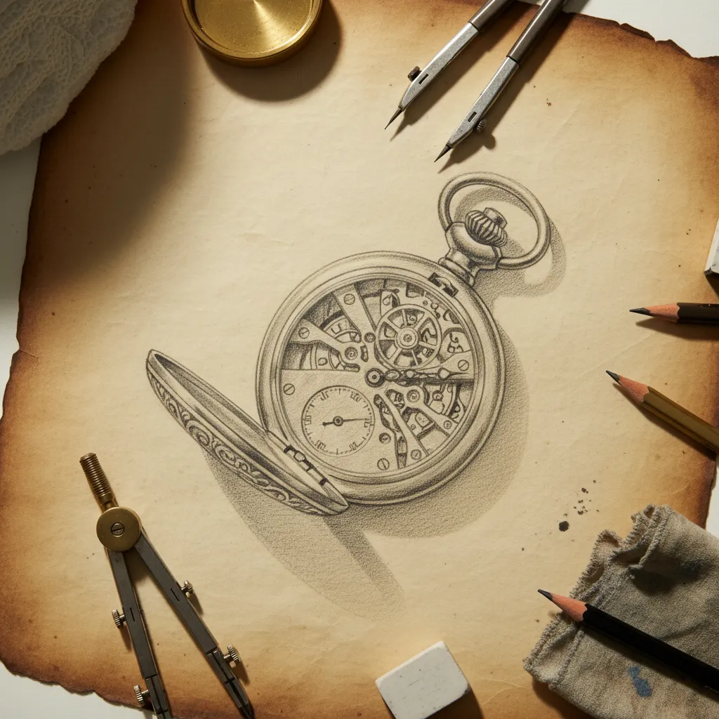 Llevo casi dos décadas desmontando y estudiando relojes de bolsillo, y puedo asegurar que pocas cosas enseñan tanto sobre su mecánica y su belleza como sentarse a dibujar uno. El dibujo reloj de bolsillo no es solo un ejercicio artístico: es una forma de entender la relojería desde dentro, de captar proporciones que a simple vista pasan desapercibidas y de apreciar detalles que solo un ojo entrenado percibe. Ya seas ilustrador, aficionado al arte o simplemente alguien con curiosidad por la relojería clásica, esta guía te acompañará desde el primer trazo hasta un resultado que te sorprenderá.